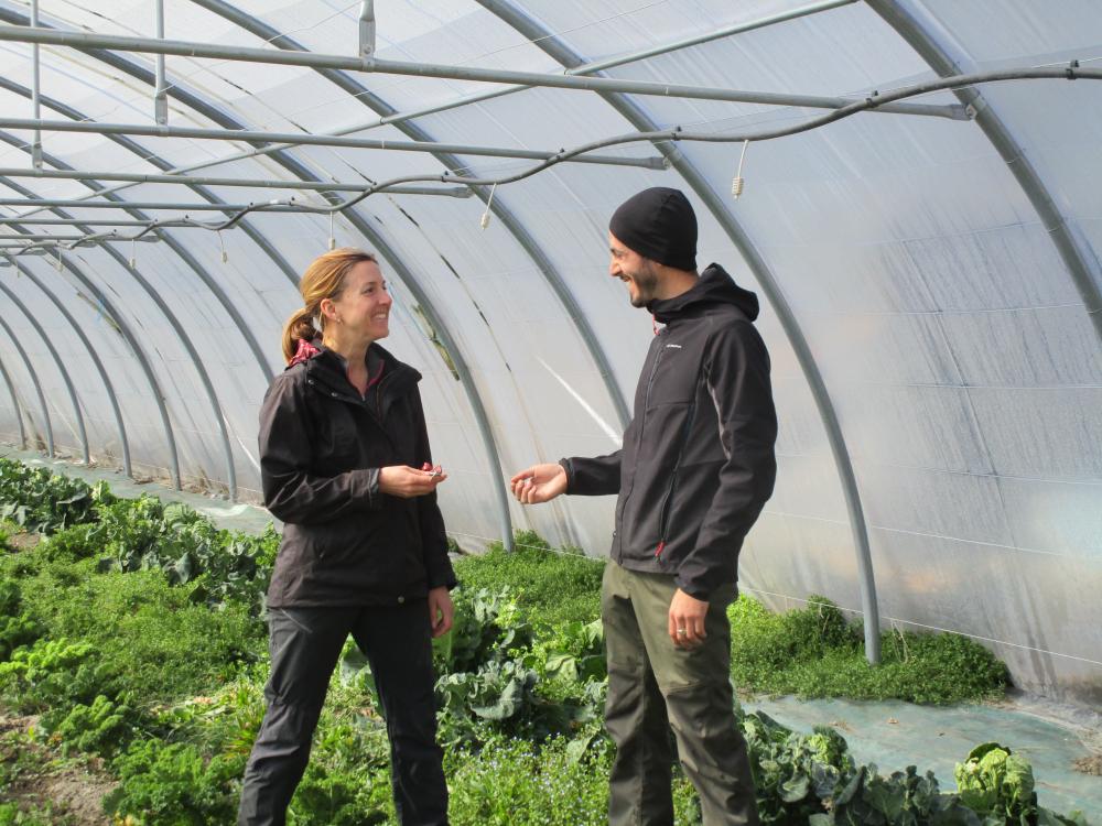 Marie-Laurence est notre première entrepreneure à l'essai, issue de la promotion BPREA "maraîchage bio" de 2011-12 . Elle a travaillé comme salariée agricole puis a souhaité tester son activité à Carmejane. La 1ere année, elle a cultivé un tunnel de 480 m2 et 3000 m2 de plein champ, en vendant au personnel / restauration scolaire et a gardé un travail à l'extérieur. En 3ème saison (2017) , elle a cultivé l'ensemble de la parcelle (1 ha de plein champ et 960 m2 de tunnels froids), a vendu à un magasin de producteurs et a préparé son installation pour février 2018. Elle garde son circuit de commercialisation , puisqu'elle s'installe à quelques km du lieu test .